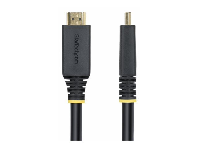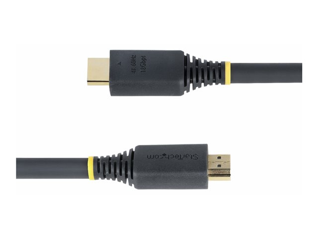 The 10 m Active High Speed HDMI Cable from StarTech.com is designed for performance-oriented connectivity, delivering visuals and audio. This cable supports resolutions up to 4K (2160p) at 60 Hz, ensuring crisp image quality suitable for high-definition displays. With 12-bit Deep Color, 32 audio channels, and support for a 21:9 cinema aspect ratio, it provides an enriched viewing experience. The advanced shielding material, coupled with EMI protection, provides stable signal transmission without interference, making it suitable for demanding environments.