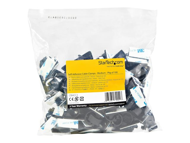 StarTech.com 100 Adhesive Cable Management Clips Black, Network/Ethernet/Office Desk/Computer Cord Organizer, Sticky Cable/Wire Holders, Nylon Self Adhesive Clamp UL/94V-2 Fire Rated