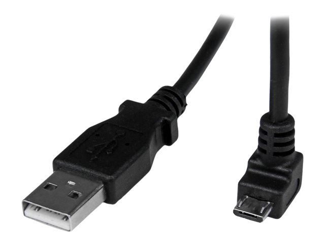 A to Down Angle Micro B - Down Angled Micro USB Cable - 1x USB A (M), 1x USB Micro B (M) - Black (USBAUB2MD) - USB-kabel - Micro-USB Type B (han) til USB (han) - USB 2.0 - 2 m - formet, 90° stik - sort