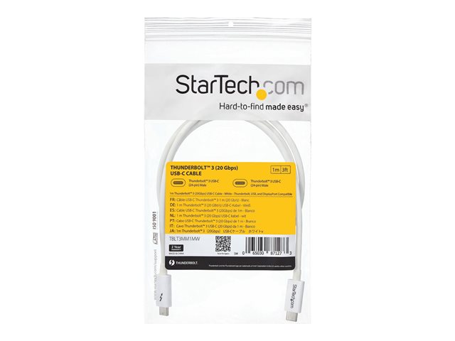 Thunderbolt kabel - USB-C (han) til USB-C (han) - USB 3.1 Gen 2 / Thunderbolt 3 / DisplayPort 1.2 - 1 m - 4K support - hvid - for P/N: CDP2HDUACP, CDP2HDUACPW