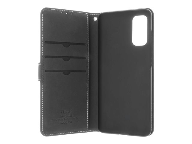 Produktbeskrivelse Insmat Exclusive Flip Case - flipomslag til mobiltelefon Produkttype Flipomslag til mobiltelefon Materiale Ægte læder, papir, karton, aluminumfolie Farve Sort Designet for Samsung Galaxy S20, S20 5G -