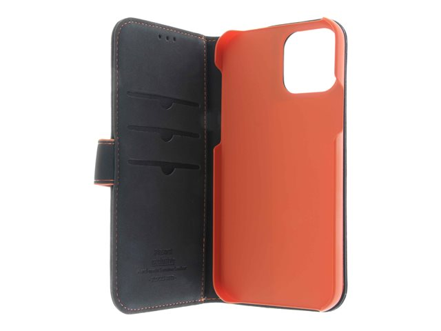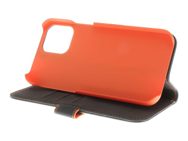 Produktbeskrivelse Insmat - flipomslag til mobiltelefon Produkttype Flipomslag til mobiltelefon Materiale Ægte læder, papir, polykarbonat, pap, polyuretan-polstring Farve Sort, orange Designet for Apple iPhone 12, 12 Pro -