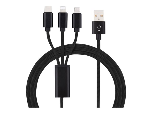 USB han til Micro-USB Type B, Lightning, 24 pin USB-C han - 1.2 m - sort