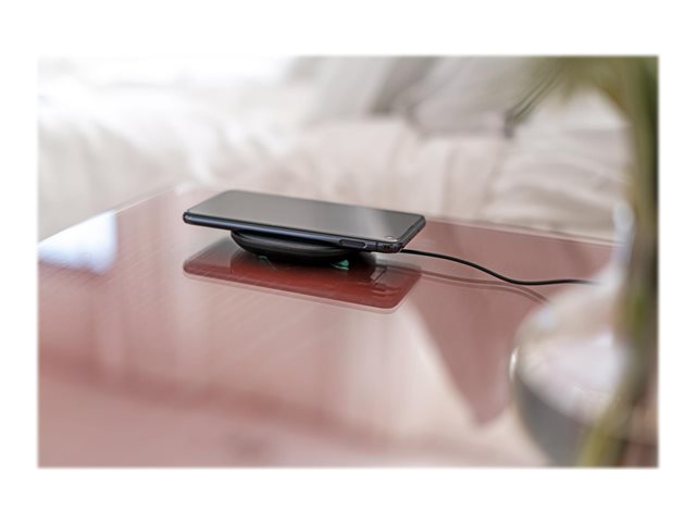 Den er lille, men effektiv. Denne trådløse opladerplade oplader lynhurtigt og er kompatibel med mange enheder. Den trådløse opladerplade oplader kompatible smartphones og trådløst tilbehør effektivt og hurtigt. Du skal bare anbringe din Qi-kompatible enhed, og så starter opladningen øjeblikkeligt ved berøring. Desuden giver den fantastiske overflade stil på alle borde.