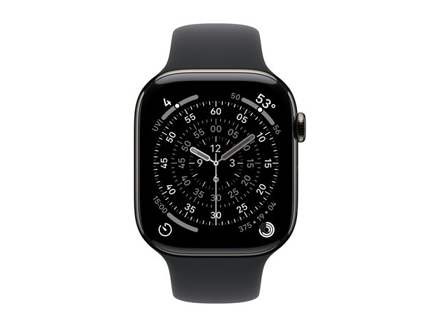 46 mm - skifer titanium - smart ur med sportsbånd - fluoroelastomer - sort - båndstørrelse: M/L - 64 GB - LTE, Wi-Fi 4, UWB, Bluetooth - 5G - 43.1 g