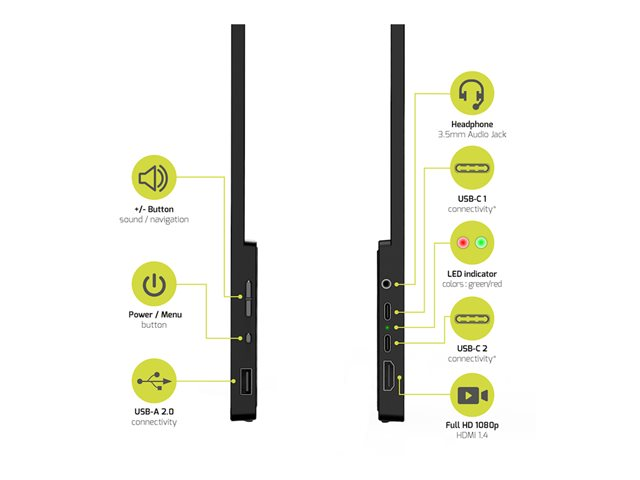 - Inkluderer flere indgangsinterfaces som HDMI og USB-C