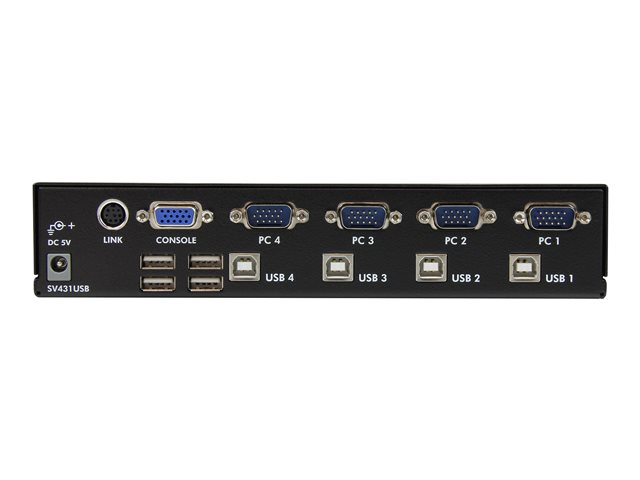 Control up to 4 PC or Mac computers from a single keyboard, mouse and monitor and share any USB device between all connected computers. The SV431USB 4 Port rack mountable VGA USB KVM Switch with Hub offers simple control of up to four computers from a single monitor/display and USB peripheral set (keyboard, mouse).