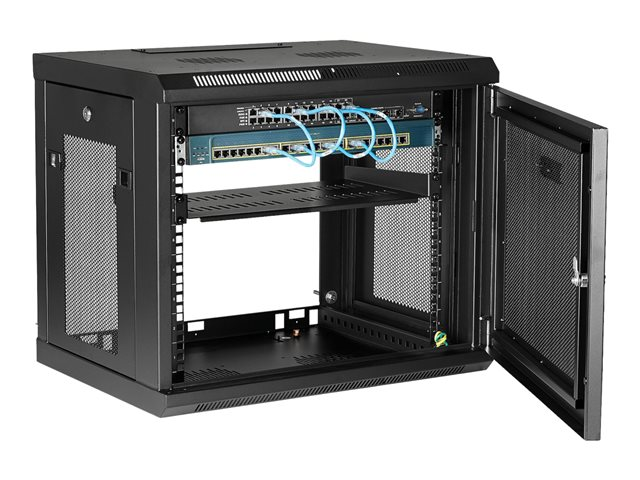 Save valuable floor space, by wall-mounting the enclosure. The wall-mounted design makes this enclosure the ideal solution for optimizing equipment storage in your classroom, retail store, server room or office. This rack also includes a 1U shelf that gives you a stable surface for storing your tools or placing equipment that's not rack-mountable.
