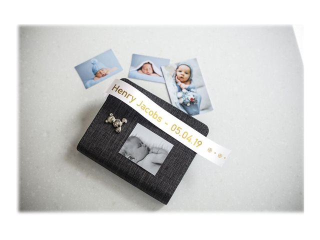 guld på hvid - Rulle (2,4 cm x 4 m) 1 kassette(r) båndtape - for PT2430PC, PT2730, PT2730VP, PT9600, PTD600, PTD600VP, PTD800W, PTH500LI, PTP700, PTP710BT, PTP750W