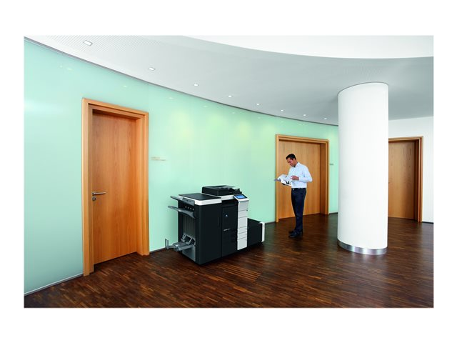Produktbeskrivelse Konica Minolta bizhub 554e - multifunktionsprinter - S/H Enhedstype Multifunktionsprinter Udskrivningsteknologi Laser (monokrom) Månedlig driftscyklus (maks.) 150000 sider Anbefalet månedlig volumen 30000 sider Maksimal kopieringshastighed Op til 55 spm Maksimal kopieringsopløsning Op til 600 x 600 dpi Maksimal udskrivningshastighed Op til 55 spm Maksimal udskrivningsopløsning Op til 1800 x 600 dpi Scanning 600 x 600 dpi Billedskærm 9" Originalstørrelse A5 (148 x 210 mm) (minimum) - A3 (297 x 420 mm) (maks.) Originaltype Ark Dokumentføder kapacitet 100 ark Mediestørrelse A6 (105 x 148 mm) (minimum) - SRA3 (320 x 450 mm) (maks.) Medietype Almindeligt papir Standard mediekapacitet 1150 ark Maksimal mediekapacitet 6650 ark Bypass-feeder kapacitet 150 ark Udbakkekapacitet 250 ark Automatisk duplikering Ja (kopiering) Ja (udskriver) Forbindelse tilgængelig Ja Interface USB 2.0, Gigabit LAN, USB 2.0 vært AirPrint-aktiveret Ja Kontormaskineegenskaber Scan til e-mail, scan til FTP, scan til SMB, scan til hukommelseskort Effekt AC 230 V (50/60Hz) Dimensioner (B x D x H) 61.5 cm x 68.5 cm x 92.1 cm Vægt 93 kg -