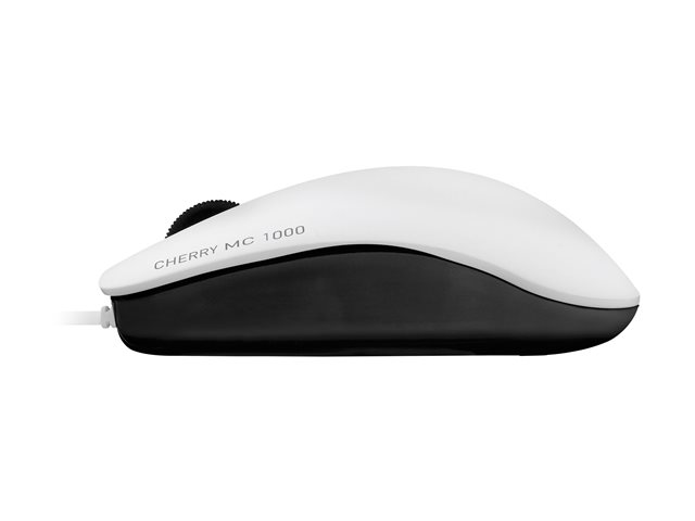 Produktbeskrivelse CHERRY MC 1000 - mus - USB - hvid (top), sort base Enhedstype Mus Forbindelsesteknologi Kablet - USB Farve Hvid (top), sort base Oversigt Højre- og venstrehåndet Dimensioner (B x D x H) 6.2 cm x 10.9 cm x 3.7 cm Vægt 90 g Teknologi i detektering af bevægelse Optisk Antal knapper 3 Bevægelsesopløsning 1200 dpi Egenskaber Scrollhjul Kabellængde 1.8 m Producentgaranti 3 års garanti -