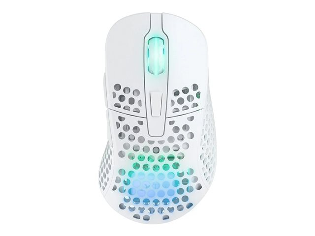 The CHERRY Xtrfy M4 wireless mouse combines performance and technology to enhance your gaming experience. With its sleek matte textured surface and RGB lighting, this mouse looks good and feels great in the hand. Designed for gamers, it features an ARM 32-bit processor and a Pixart 3370 sensor, providing precision and responsiveness. The 2.4 GHz wireless connectivity ensures a stable connection, while the USB wireless receiver makes it easy to set up and use on various devices. With a realtime sensitivity switching capability, users can adjust the DPI from 400 to 19000, allowing for control suited to any gaming scenario. The ergonomic design includes two thumb buttons for easy access to functions, enhancing gameplay and user experience.