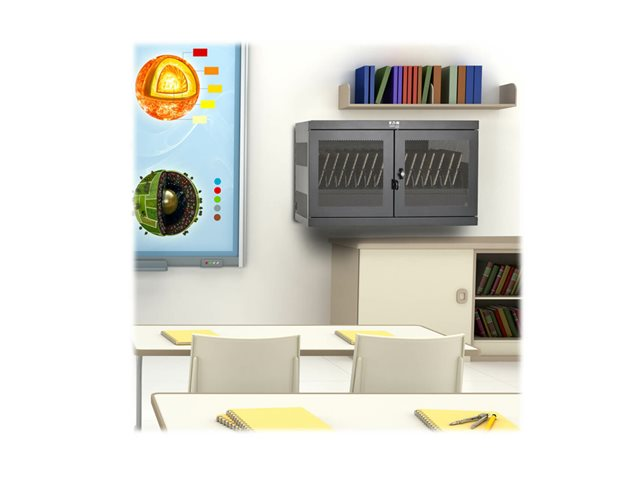 Eaton Tripp Lite Series 16-Device USB Charging Station Cabinet with Sync for iPad and Android Tablets, Wall-Mount and Cart Options, 230V, BS1363 to C13 Plug, Black