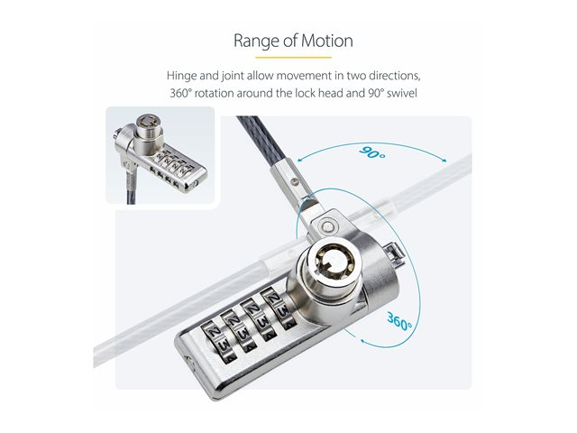 StarTech.com 10-Pack Dual-Access Laptop Lock, 6.5ft (2m) Keyed Alike and Combination Security Cable Lock for K-Slot Devices, Computer Anti-Theft Steel Cable