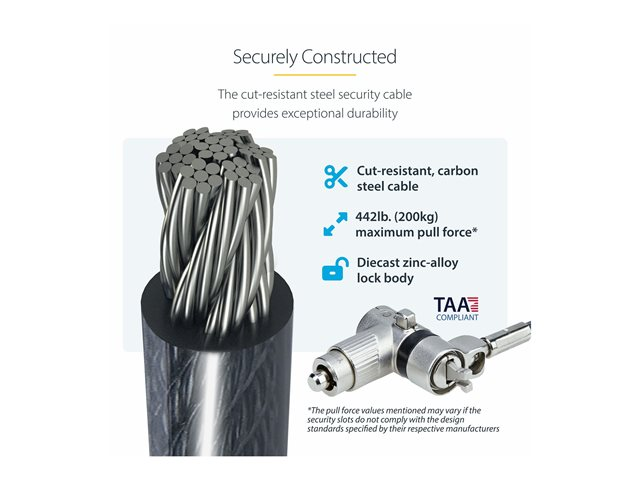 • 6.5 ft (2 m) steel cable offers flexibility in device placement while ensuring security